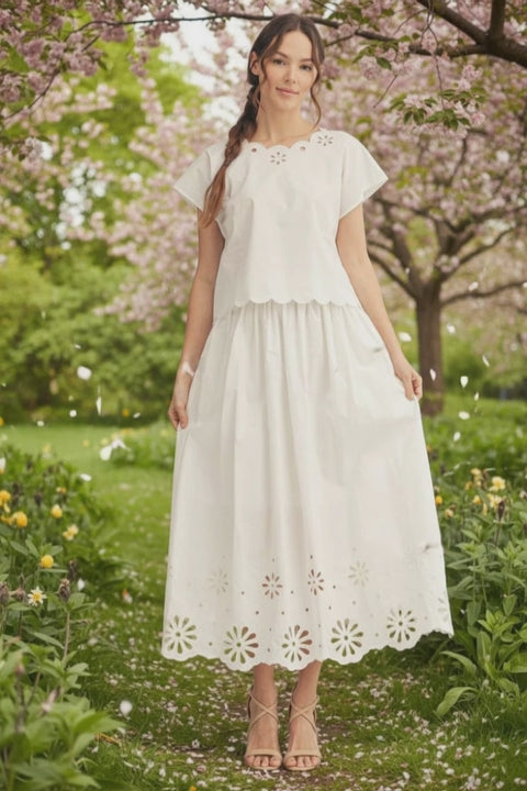 - Flower Eyelet Detailed Midi Skirt