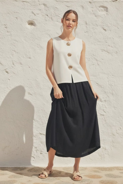Jodifl Solid Woven Maxi Skirt with Elastic Waistband