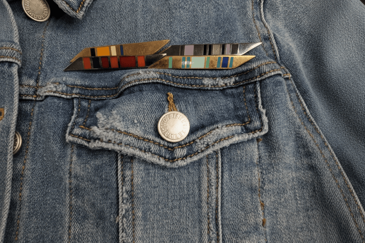 - Sturdy metal pin brooch